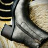 - Fermeture éclair à l’intérieur de la cheville, et élastique de l’autre coté.