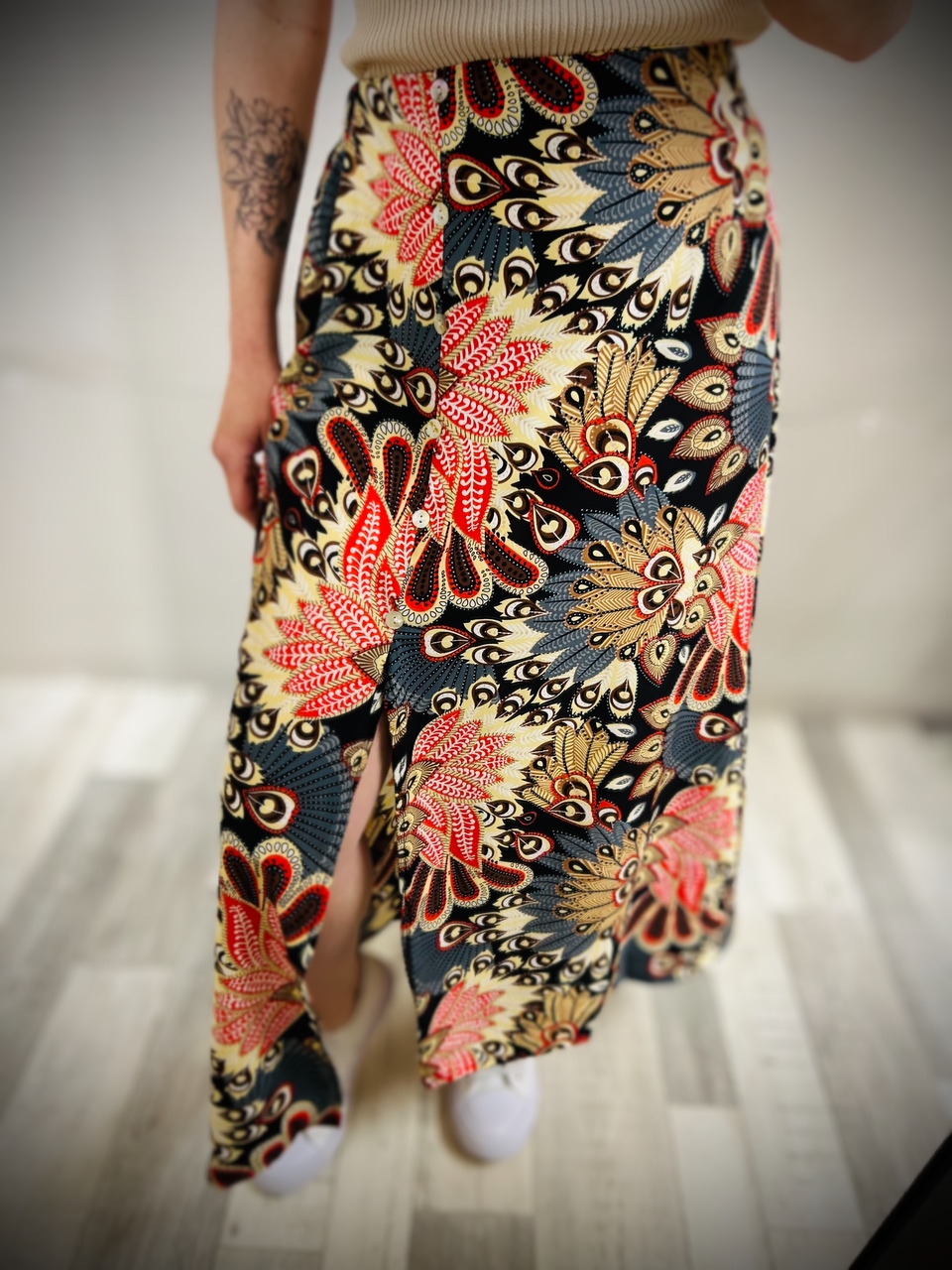 - Fendue coté gauche jusqu’au genou