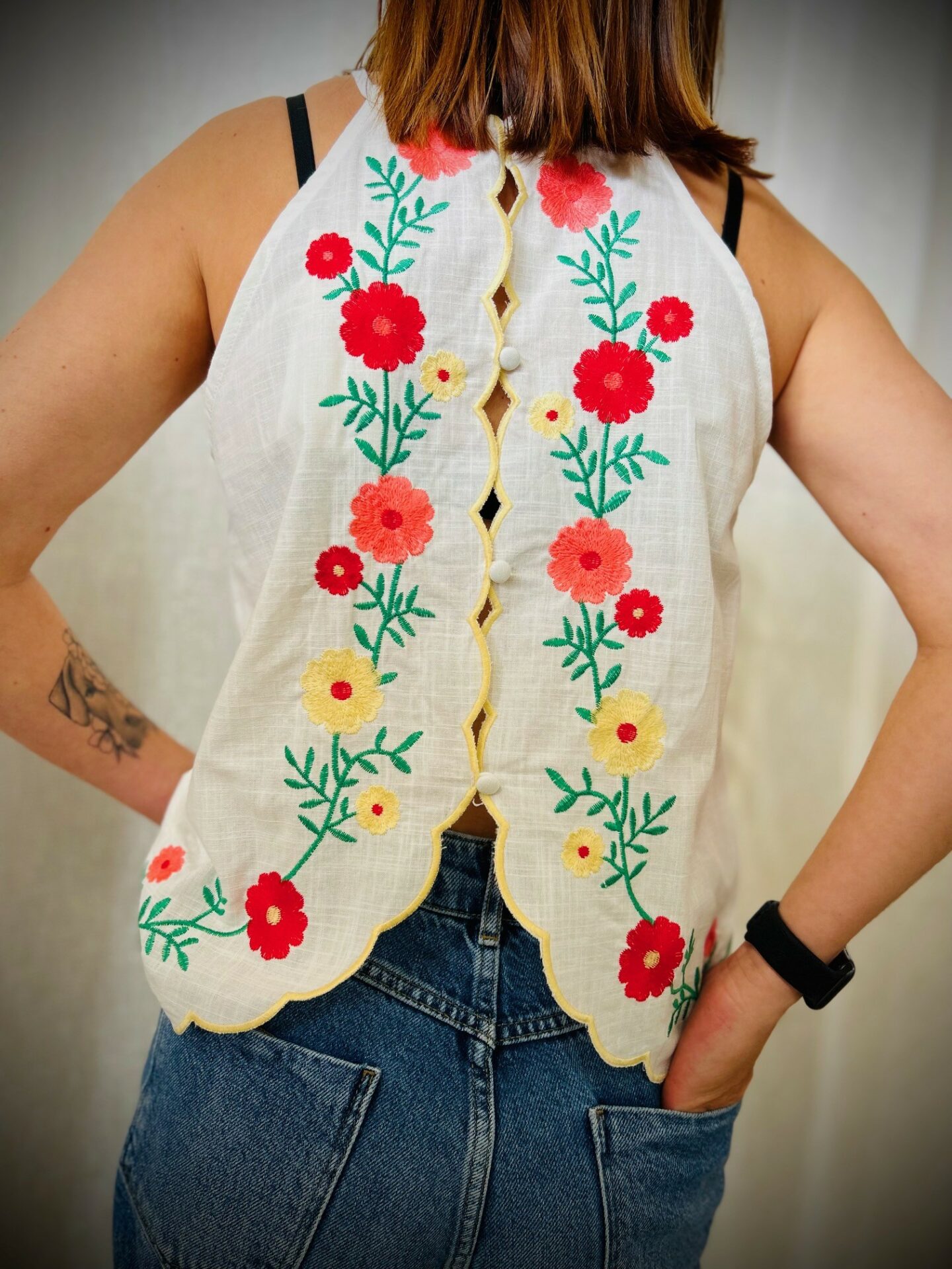 - Fleurs brodées en couleur
